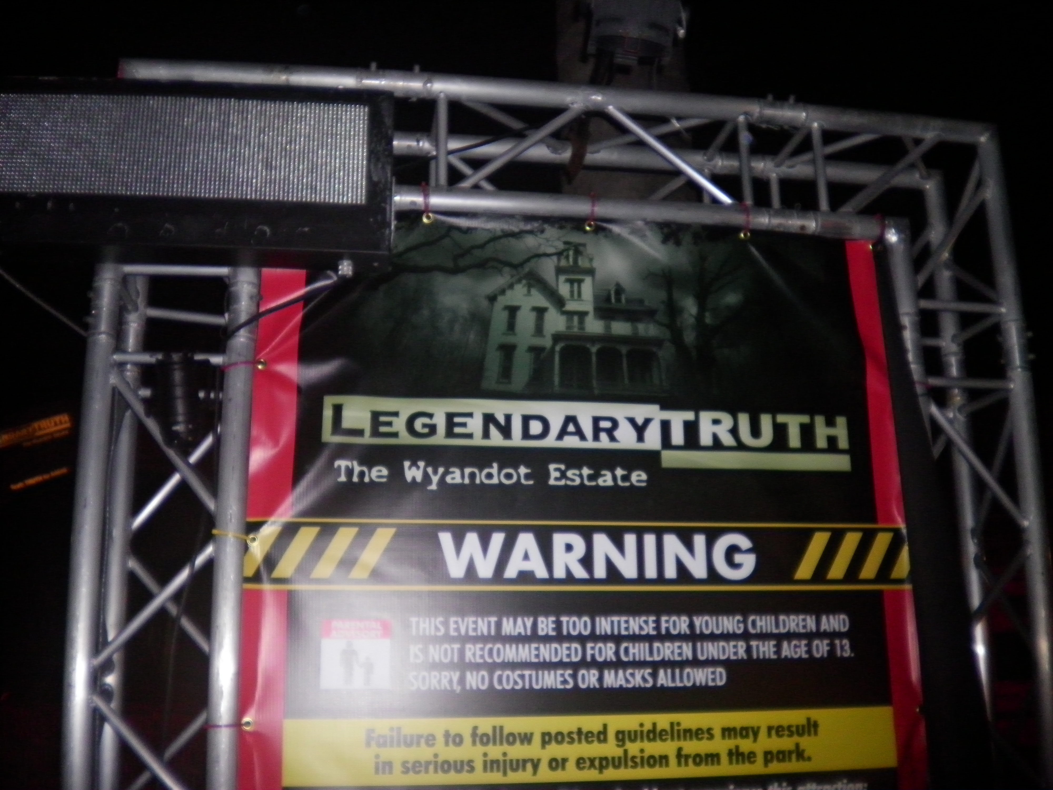 5) Legendary Truth: The Wyandot Estate- So have you ever wondered what it would be like to go on a paranormal investigation where your provoking has gone a bit too far? Then this is the house for you! The premise of this house is a new invention for drawing out paranormal activity has been put into action…and you get to try it out! This particular house was home to some rather cool effects. Very ahead of itself this house was! The ghoulish glowy faced ghosts were a nice touch. especially when you realize the face is doing a sort of black light glow…and there are no black lights!! A few things to mention is a floating spectre on a wall (I really just couldn’t figure this effect out!), a hologram of the Storyteller that is über realistic, and living furniture! Man, that living furniture will get you eveytime! The distraction to that room is what get’s you. The room with it in there seems pretty normal except a ghost sitting in the corner. Well while you are busy watching him, a freakin’ chair scares you!! The house just has a very creepy feeling to it, and paints a pretty good story. I really can only hope they move forward with the tech in this house!